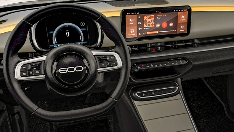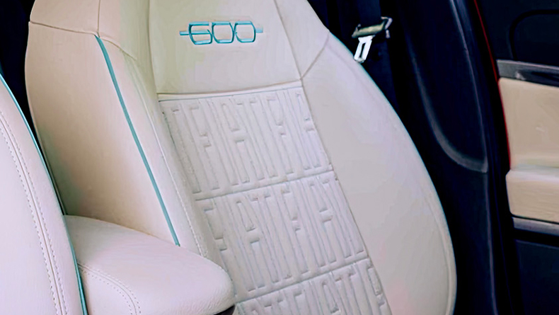 Εξερευνήστε τον αληθινό τρόπο ζωής της ιταλικής Dolcevita μέσα σε ένα premium εσωτερικό ιβουάρ χρώματος και τις τιρκουάζ λεπτομέρειες με το μονόγραμμα της FIAT.